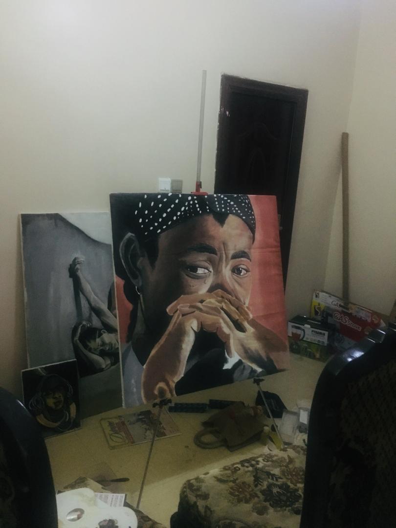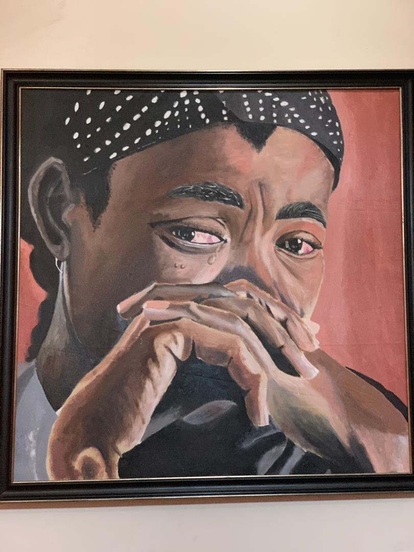 An oil on canvas painting measuring 1.2m by 1.2m depicting earth cries on the athrocities of human. issues surround global warming and its dangers