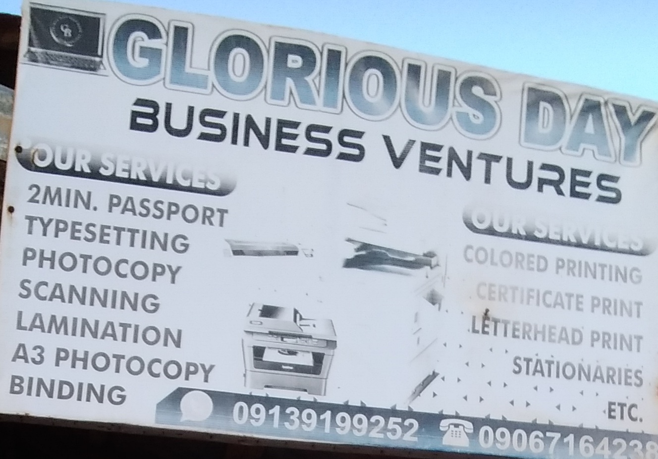 Glorious Day Business Ventures render services like typing and photocopy ...
